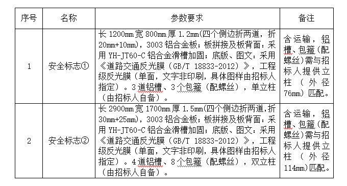 1. 本項(xiàng)目最高限價(jià):安全標(biāo)志①為365元/塊,安全標(biāo)志②為2230元/塊,報(bào)價(jià)應(yīng)包含但不限于產(chǎn)品制作、運(yùn)輸及稅金等費(fèi)用,我司不再支付其他任何費(fèi)用。投標(biāo)報(bào)價(jià)不得高于最高限價(jià),否則按無效標(biāo)處理。