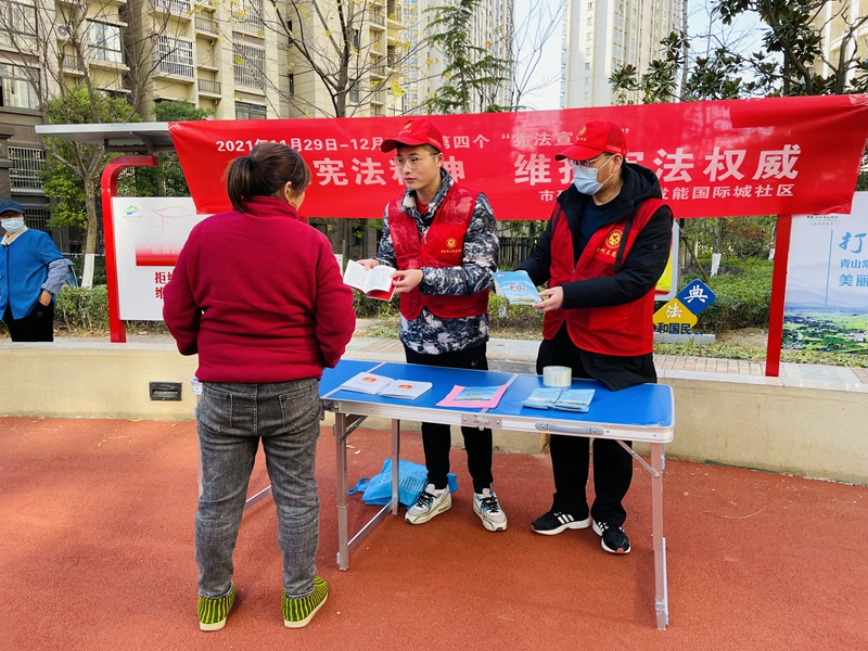 今年的憲法宣傳主題為“以習(xí)近平法治思想為指引,堅(jiān)定不移走中國特色社會(huì)主義法治道路”。在社區(qū)法治小廣場,志愿者向居民發(fā)放憲法宣傳手冊(cè),講解國家憲法的由來、地位、主要內(nèi)容以及學(xué)習(xí)宣傳憲法的重要意義。