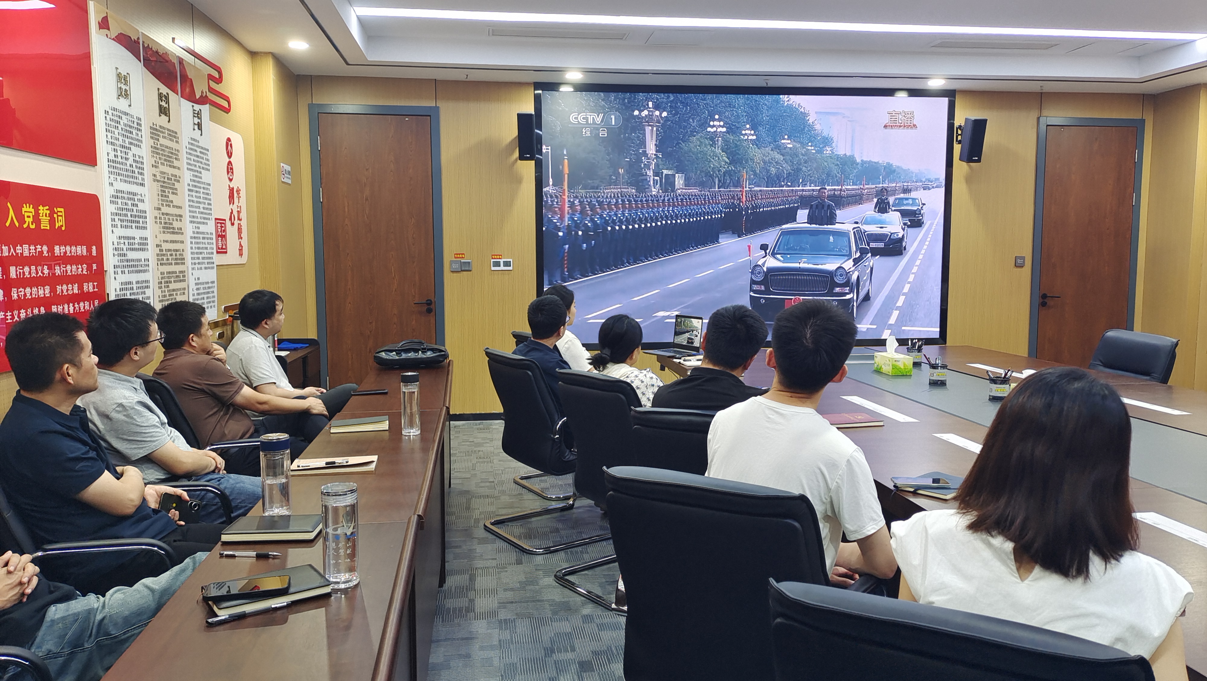 當天,各子公司結合礦山生產實際設置觀看點,確保一線礦工、技術人員及后勤保障人員都能準時觀看。上午9時整,紀念大會正式開始。直播畫面中,天安門廣場莊嚴壯麗,長安街盛裝以待,大家全神貫注觀看閱兵盛況,認真聆聽習近平總書記重要講話,共同感受大國崛起的磅礴力量。當看到受閱方隊邁著鏗鏘步伐通過天安門、先進裝備列陣亮相時,大家更是心潮澎湃,為祖國的強大和人民軍隊的威武雄壯而感到無比自豪。