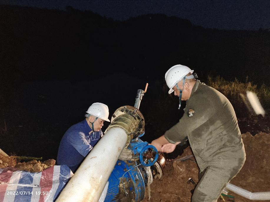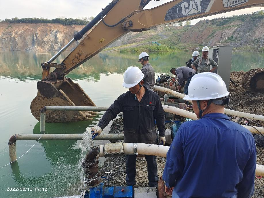抗旱方案有了,可是要想把水從70米深的礦坑內(nèi)抽到地面,不但需要揚(yáng)程特別高的水泵,還需要高規(guī)格長距離的水管和電纜,還有很多配套零部件要采購。旱情就是命令,抗旱就是責(zé)任,興天礦業(yè)副總經(jīng)理趙崗牽頭落實(shí)抗旱物資采購,親自指揮設(shè)備調(diào)運(yùn)安裝,帶領(lǐng)公司抗旱突擊隊(duì)和社區(qū)干部深入礦坑,一起研究水泵需要多大功率安裝在什么地方、水管需要多粗從哪里下放、電纜需要多長從哪里接電等問題。方案制定好了,老百姓的水稻不能等,挖掘機(jī)第一時(shí)間進(jìn)場(chǎng)整理場(chǎng)地,興天礦業(yè)和社區(qū)準(zhǔn)備的水泵、水管電纜等也迅速到位,抗旱突擊隊(duì)與社區(qū)干部群眾一起與時(shí)間賽跑,從早到晚緊張施工,一心想著的就是早點(diǎn)把水抽上去,盡量把旱情影響降到最低。