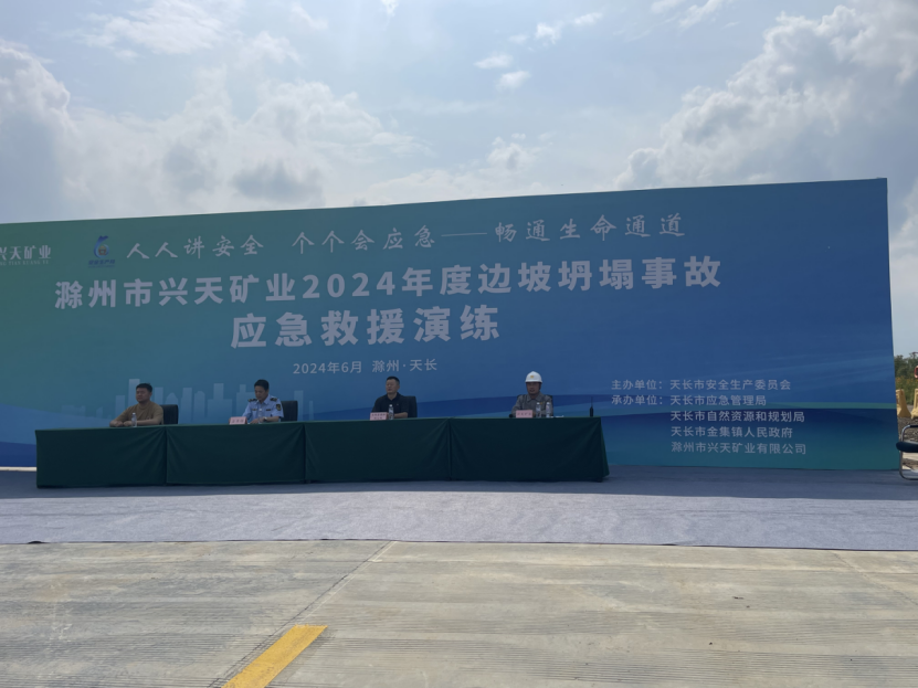 為提高突發(fā)事件應(yīng)對(duì)能力,檢驗(yàn)突發(fā)事件應(yīng)急預(yù)案可操作性,6月27日,興天礦業(yè)組織開展邊坡坍塌事故應(yīng)急救援演練,天長(zhǎng)市自然資源和規(guī)劃局以及金集鎮(zhèn)政府受邀蒞臨指導(dǎo)。